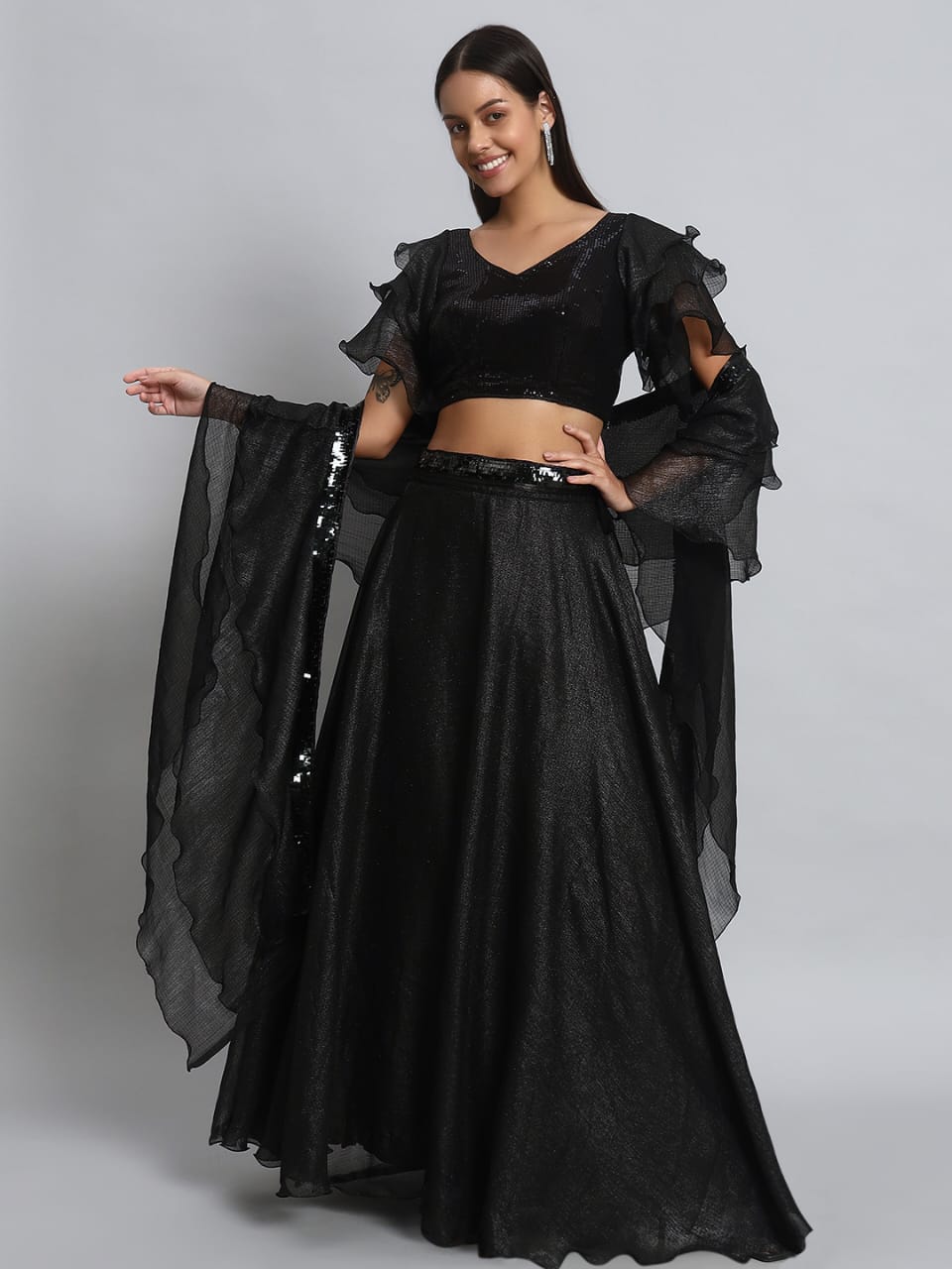 • Transform your look with our Designer Crop Top and Skirt set, perfect for any occasion. Shop now for timeless elegance