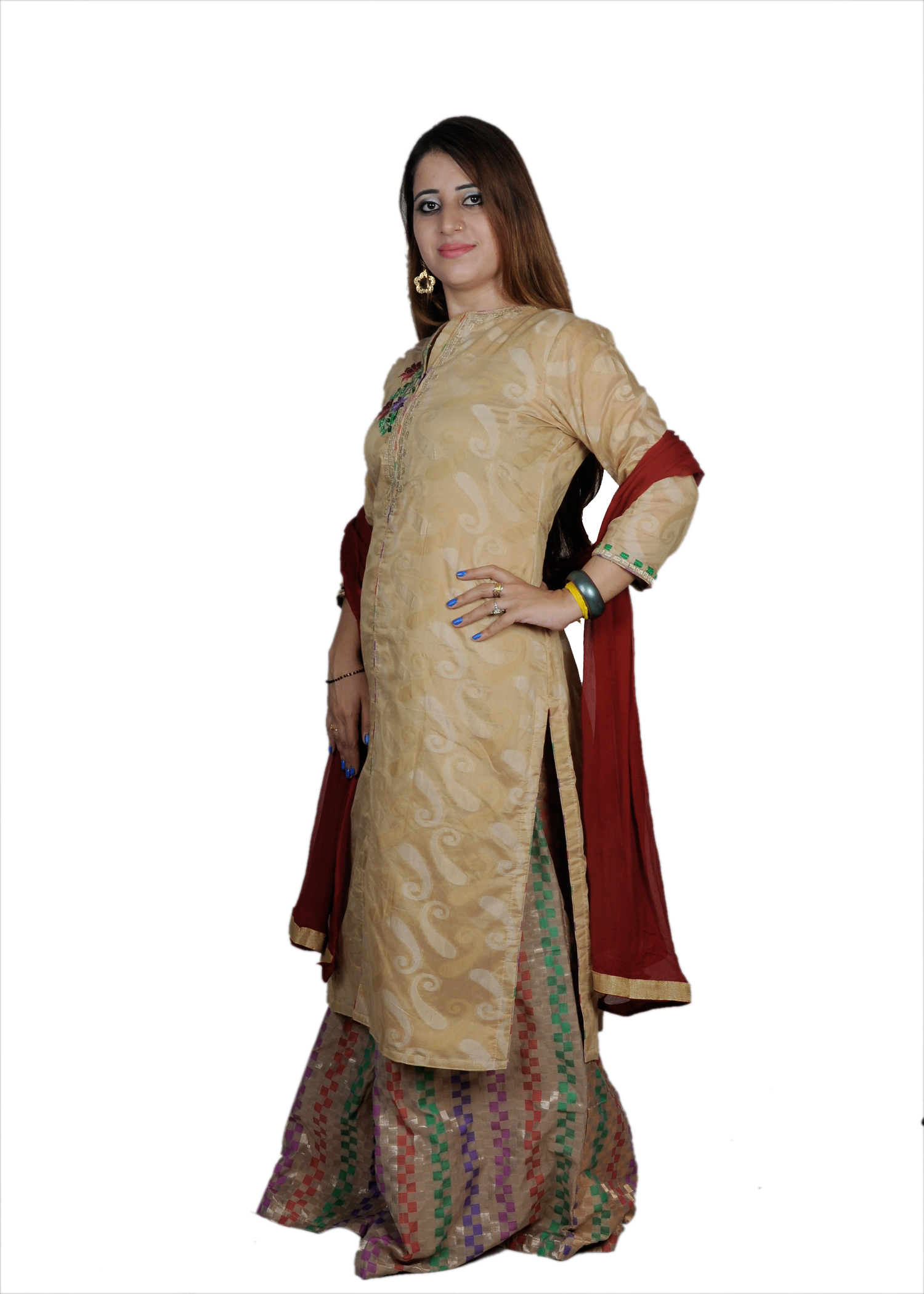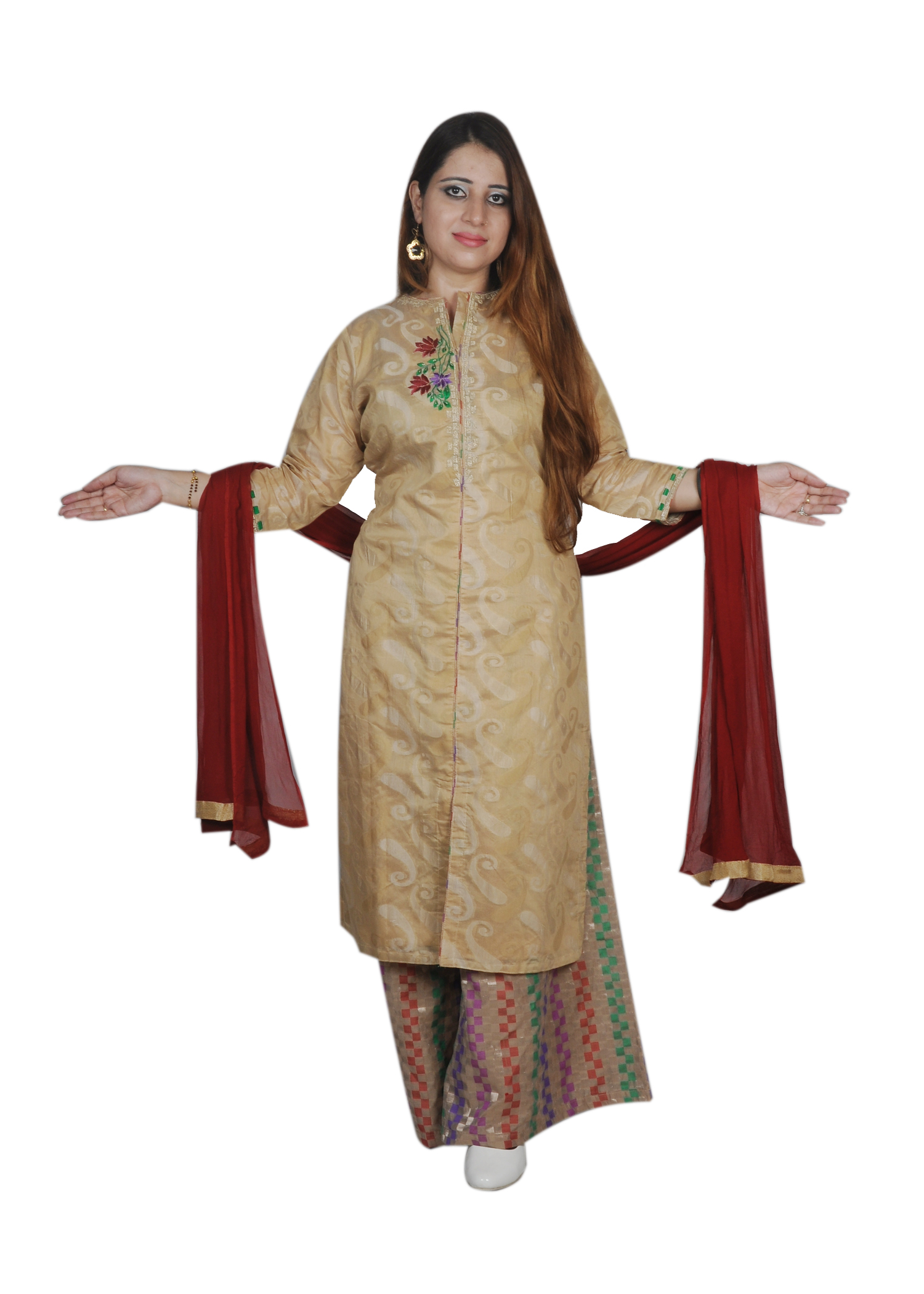 Beige color kurta duppatta ,plazo set..with threadwork side buta.