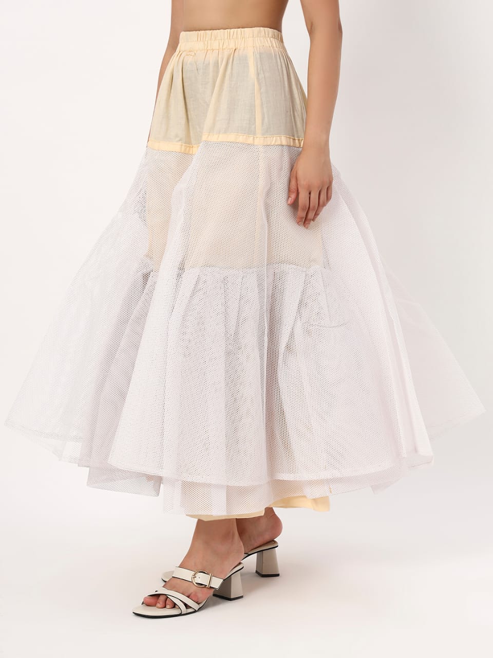 ✨HOOP LESS UNDERSKIRT PETICOAT ✨ FREE SIZE WAIST WITH ADJUSTABLE LENGTH YELLOW SKIRT