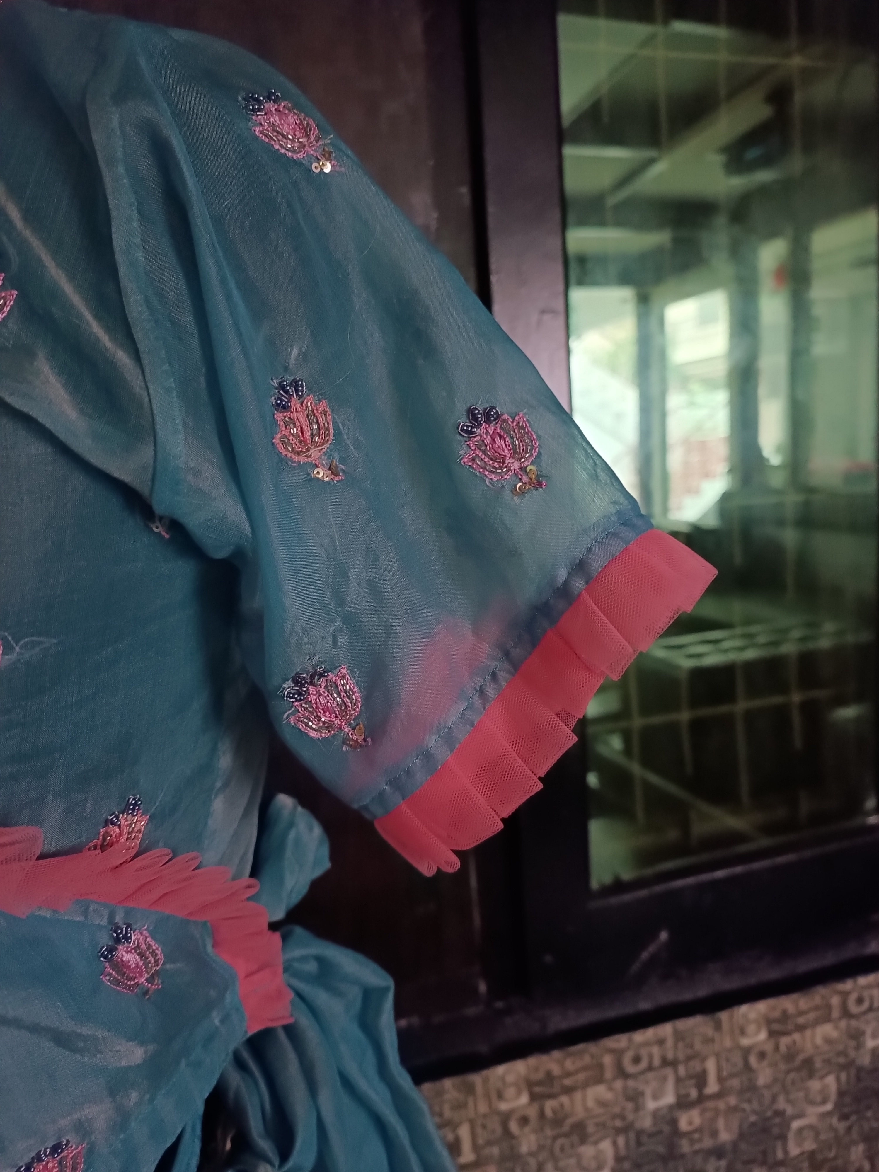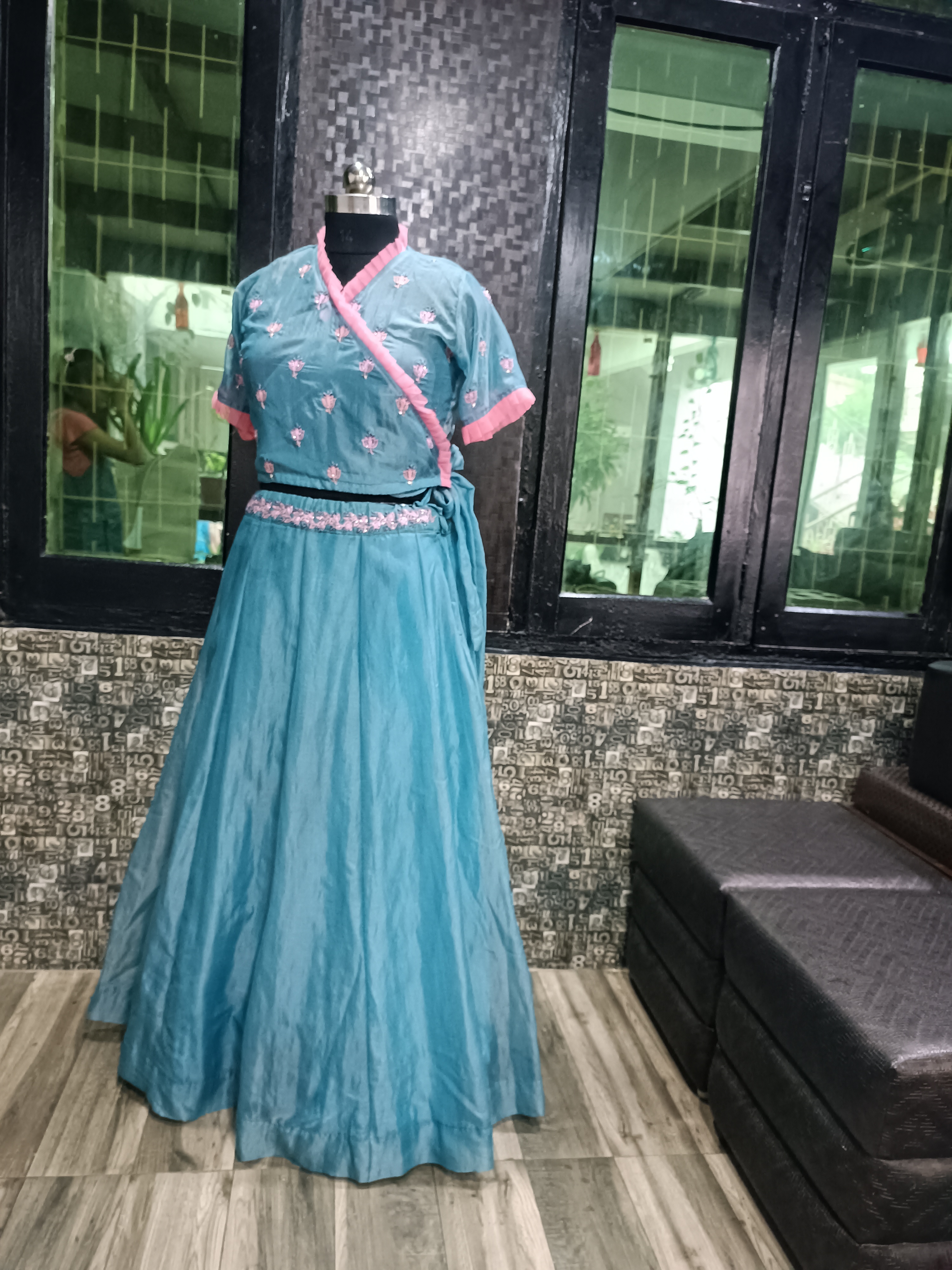 Orgenza cloth grey color beautiful crop top with hand embroidy..