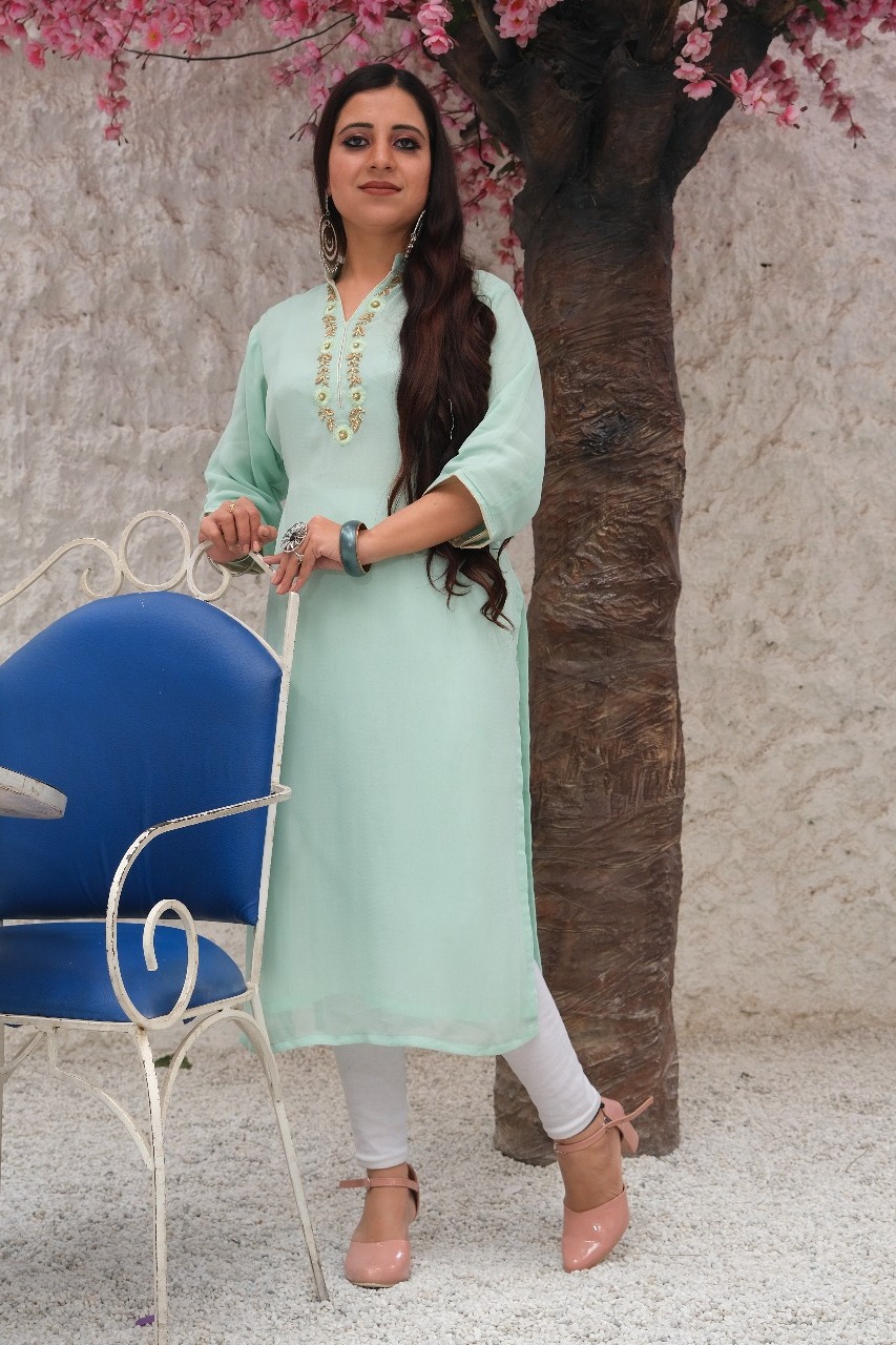 this is letest indian kurti for womens dresses perfect for casual as well as formal wear.this meduam lenth diginer gorgget kurta for women is soft against the skin that keeps you at ease when ever you wear it.this kurta women is plain yet most wearable kurta for women.this indian outfit immidaietly grab the attantion of the people arround you and make you look attractive and elegent..