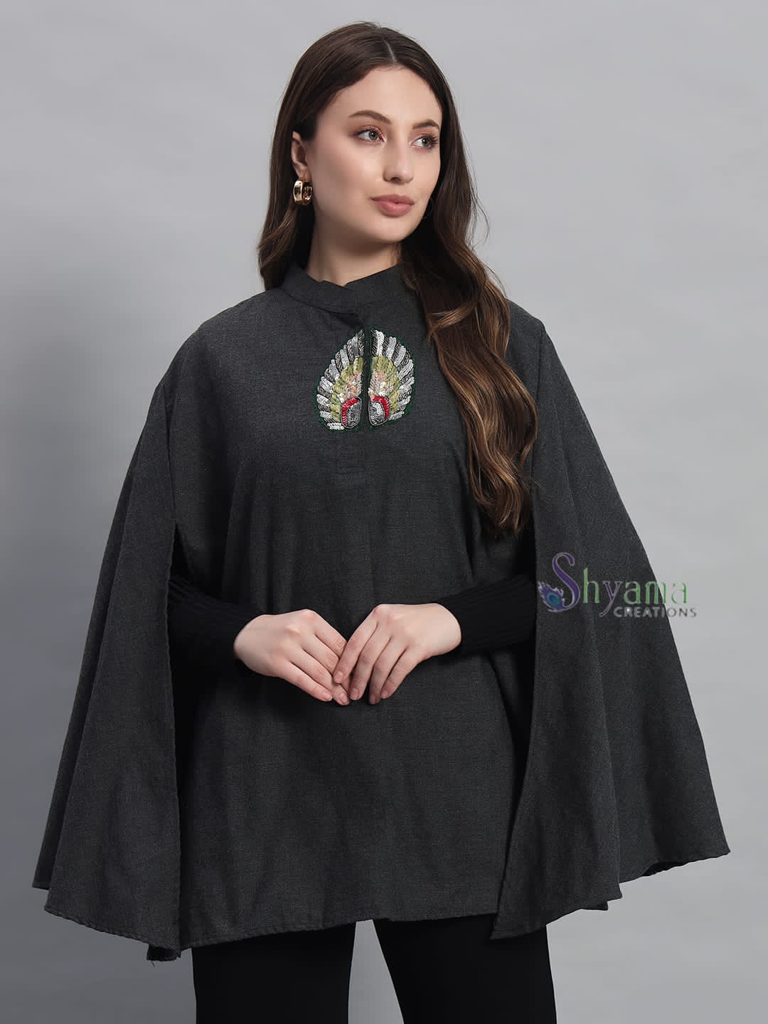 Used Woollen fabric for designer cape beautifull hand embroidery in neck line You look fabulous