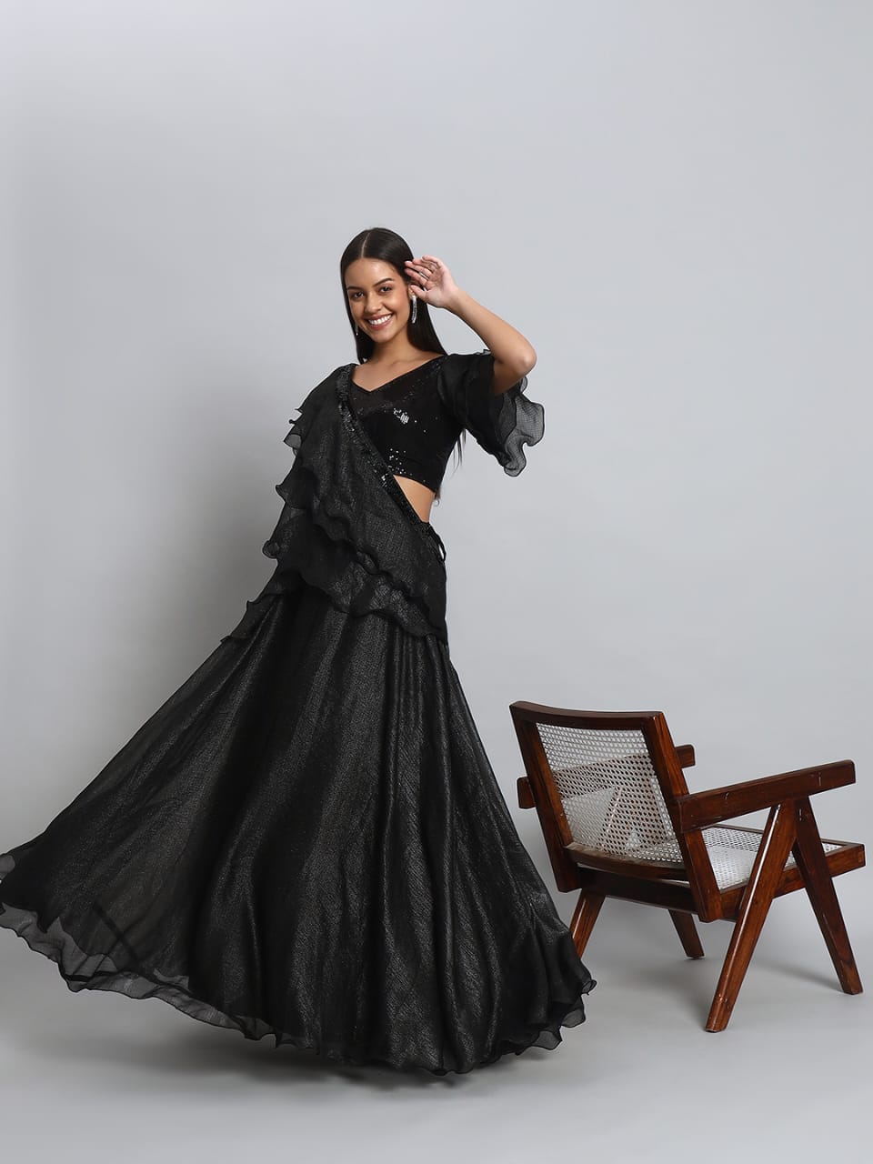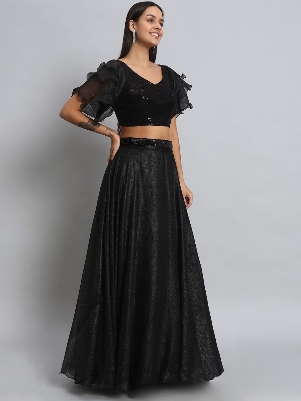 • Transform your look with our Designer Crop Top and Skirt set, perfect for any occasion. Shop now for timeless elegance