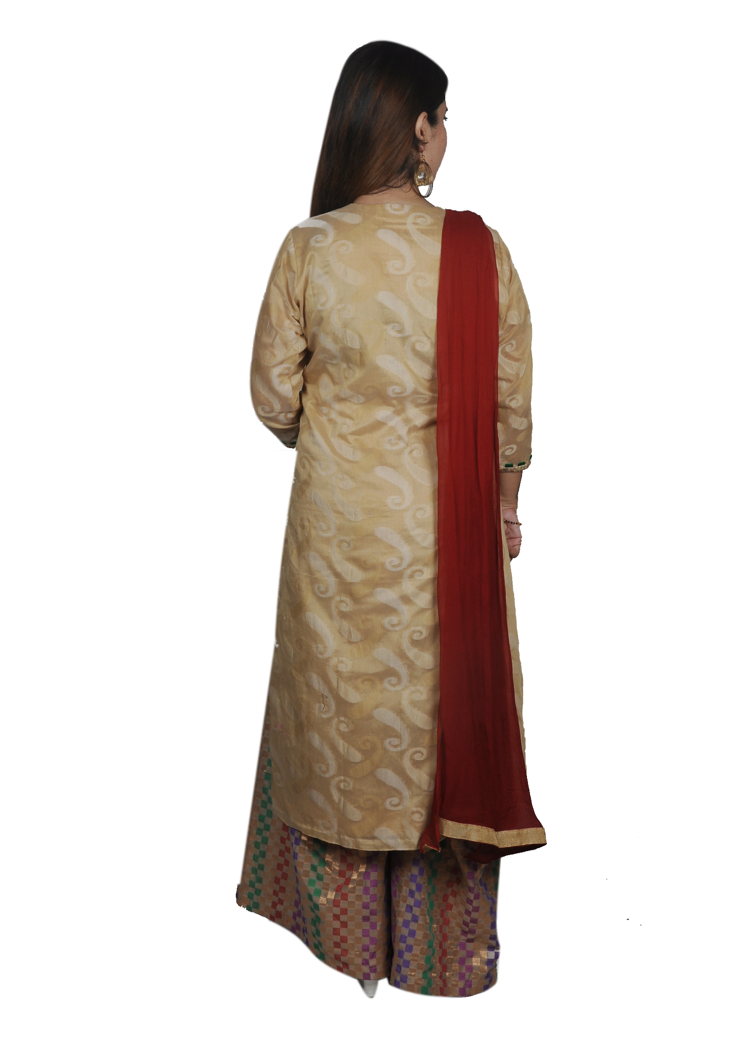 Beige color kurta duppatta ,plazo set..with threadwork side buta.