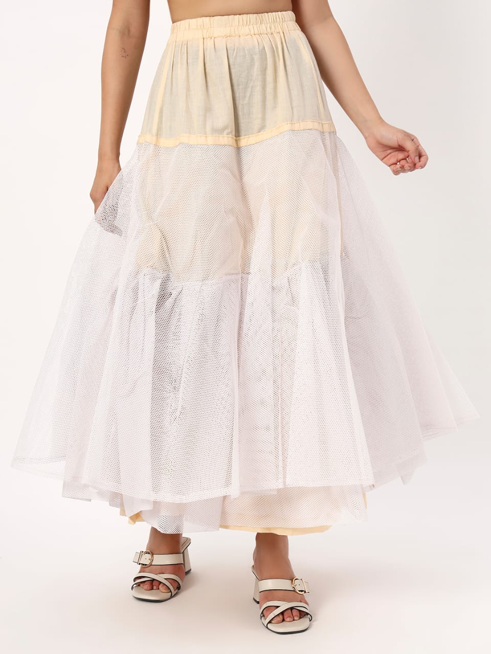 ✨HOOP LESS UNDERSKIRT PETICOAT ✨ FREE SIZE WAIST WITH ADJUSTABLE LENGTH YELLOW SKIRT