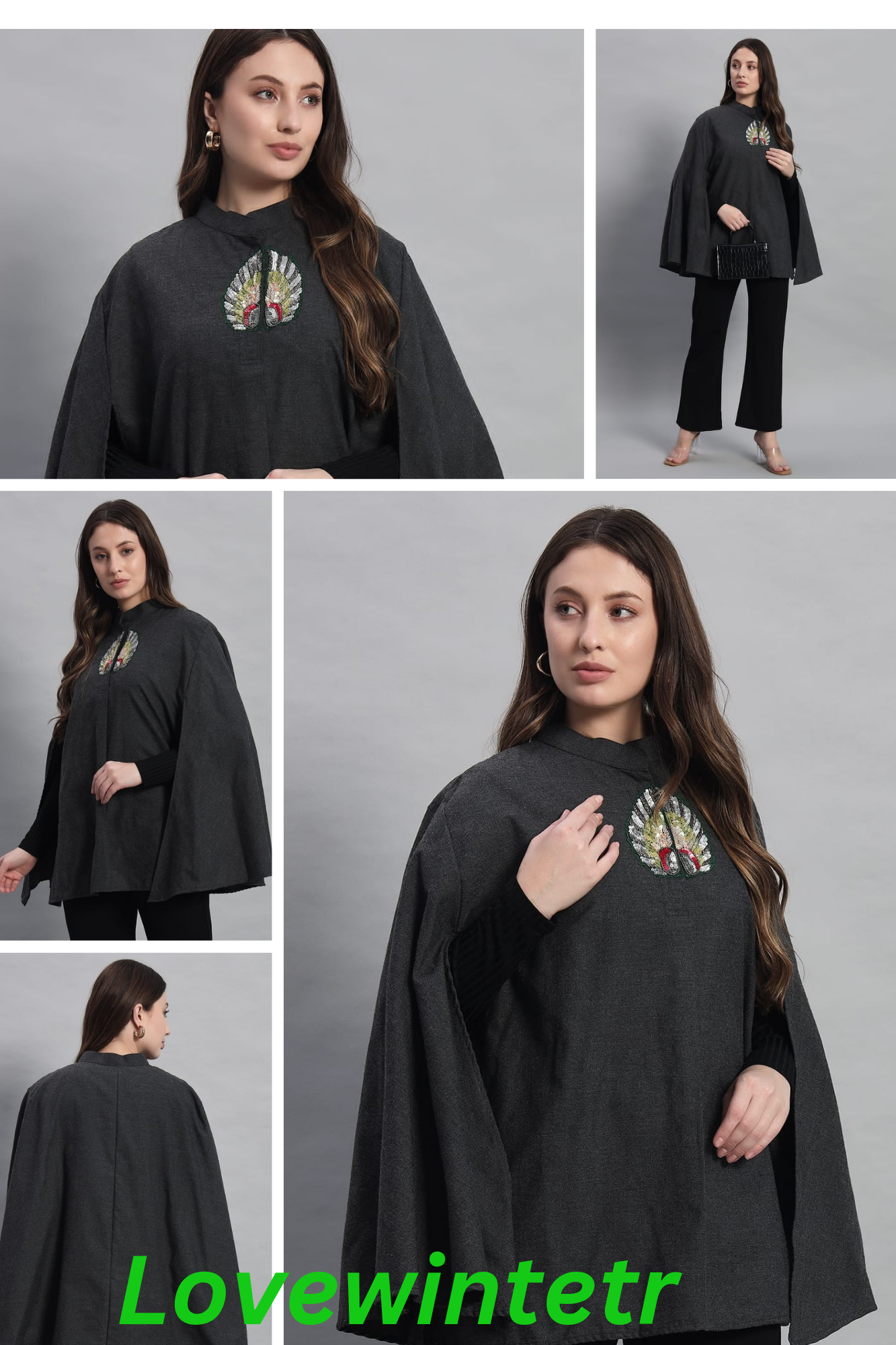 Used Woollen fabric for designer cape beautifull hand embroidery in neck line You look fabulous
